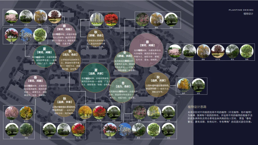 再结合不一起节的应季组合,如“春樱、夏叶、秋桂、冬梅”,四季皆有景,季季景不同,为业主的日常日子增加天然典礼感。