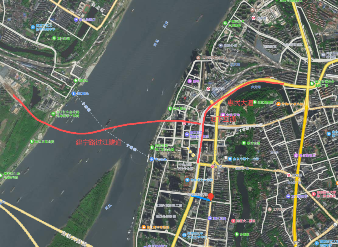 这一点其实与五桥过江后在扬子江大道和江山大街交汇处设置的地下匝道有点相似,主要是受制于建宁路周边都是大片建成区,无法建设立交桥。