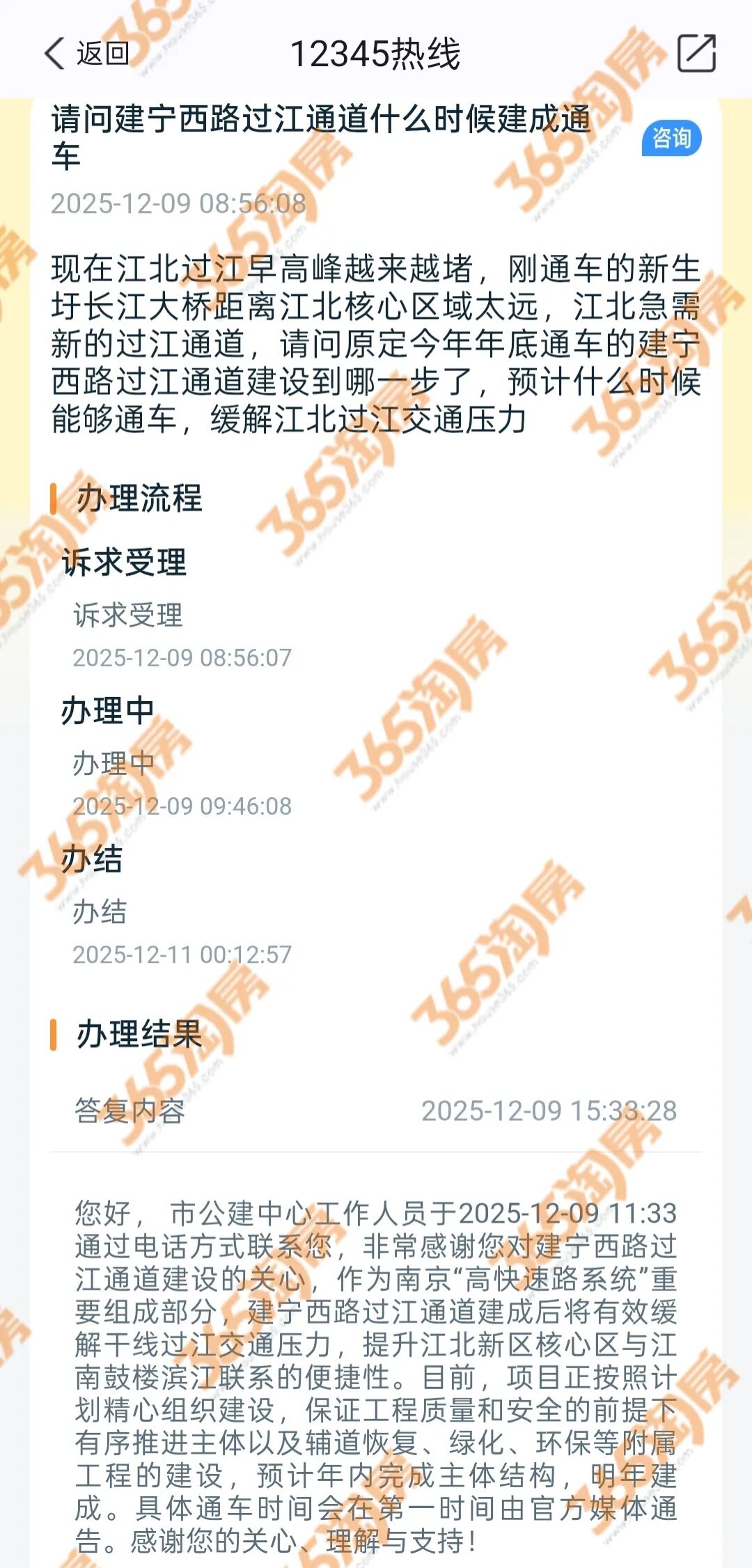 随后南京市公建中心回复:作为南京“高快速路系统”重要组成部分,建宁西路过江通道建成后将有效缓解干线过江交通压力,提升江北新区核心区与江南鼓楼滨江联系的便捷性。目前,项目正按照计划精心组织建设,保证工程质量和安全的前提下有序推进主体以及辅道恢复、绿化、环保等附属工程的建设,预计年内完成整体的结构,明年建成。
