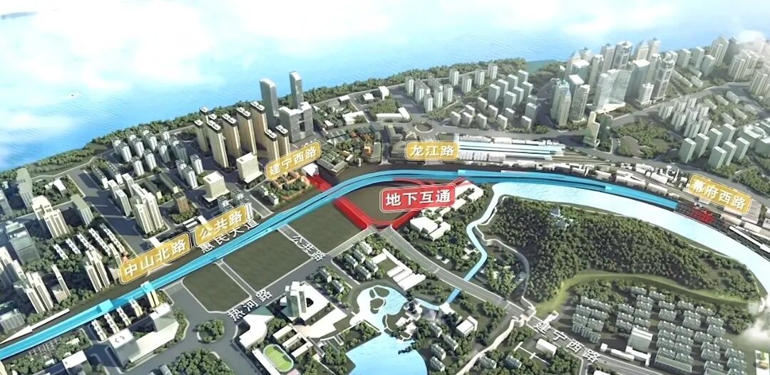 并且在建宁路设置地下互通,以此来实现主城外环路与建宁路过江隧道的快速转换。